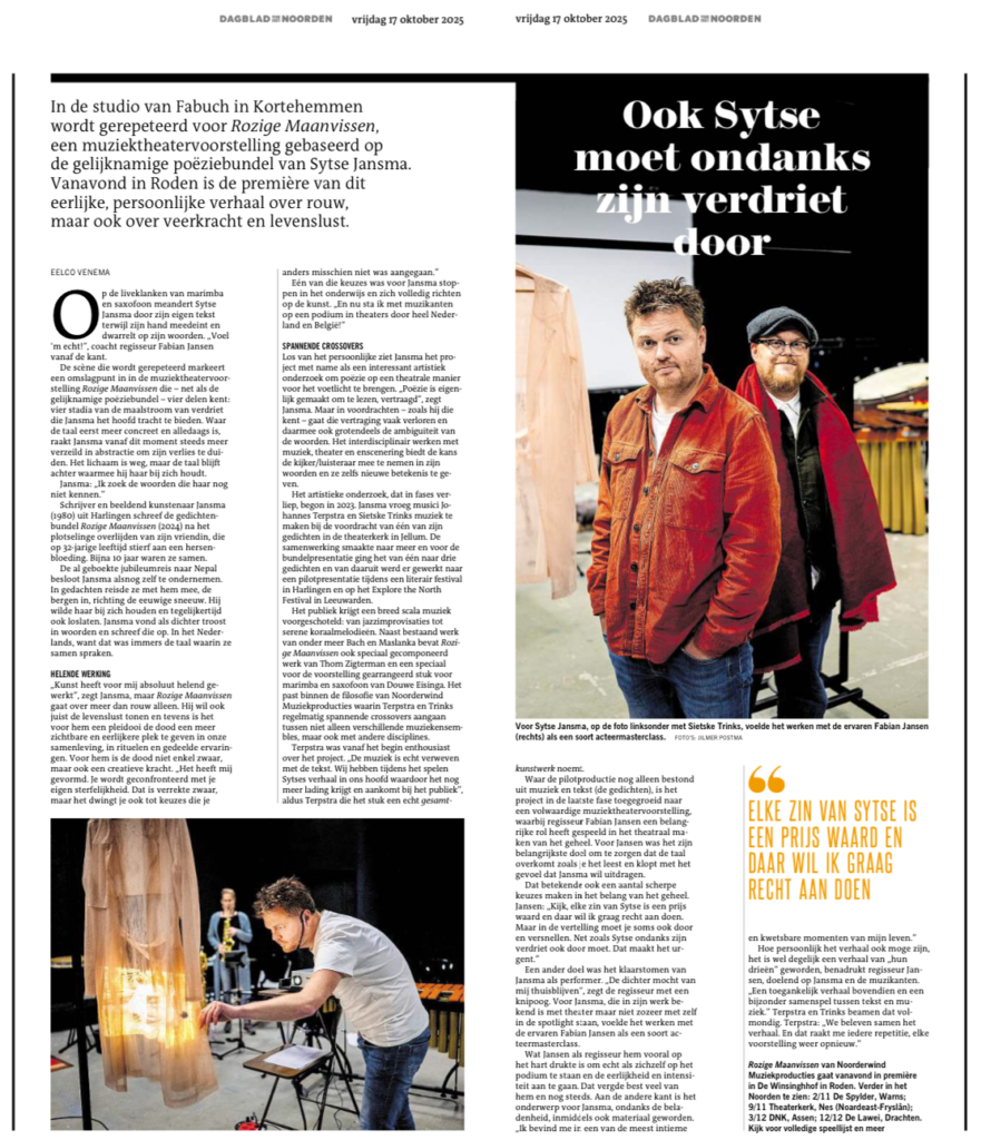 De Leeuwarder Courant/DvhN – Interview over de voorstelling Rozige Maanvissen