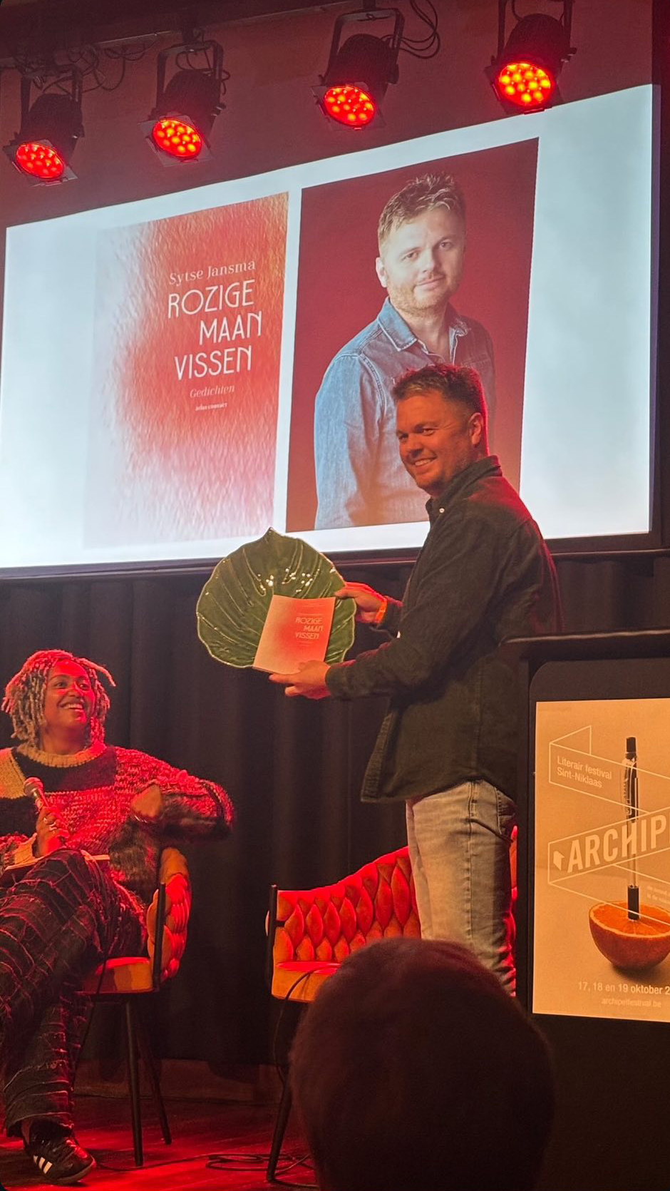 Gisteren mocht ik in Sint-Niklaas, tijdens het Archipel-festival, de Poëziedebuutprijs in ontvangst nemen. Ik voel me ontzettend vereerd en ben trots dat ik tussen zulke sterke dichters mocht staan — Sophia Blyden en Anke Senden.