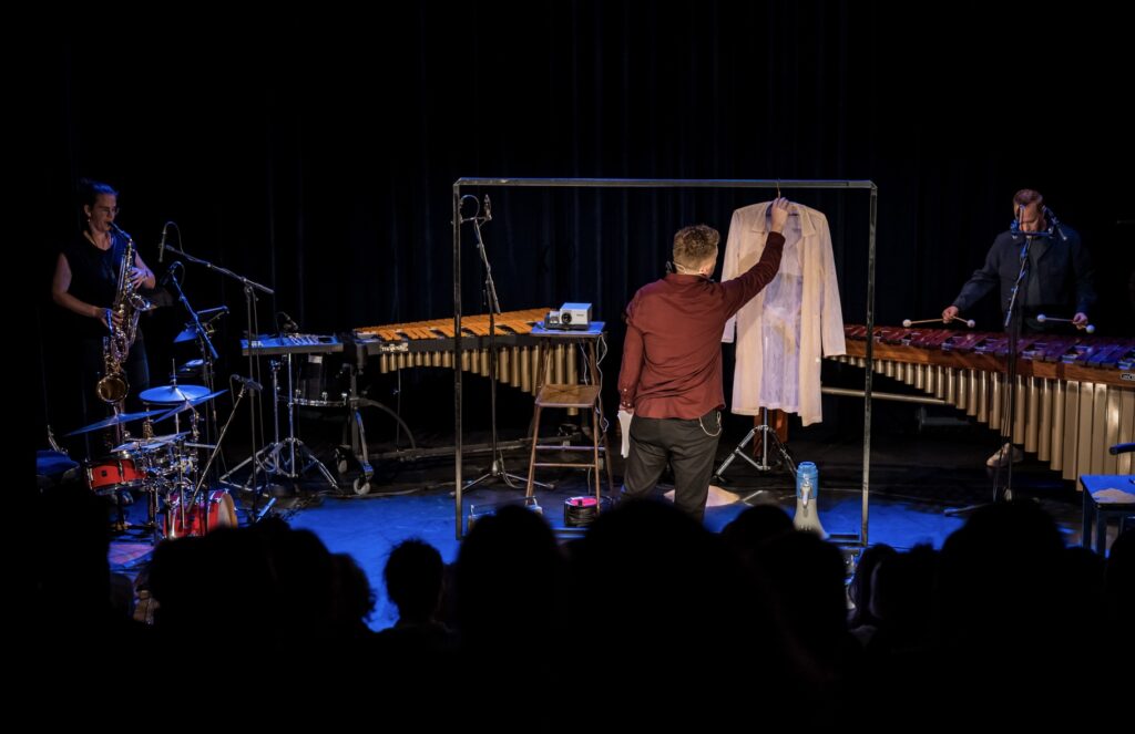 De teksten komen uit de bekroonde, gelijknamige dichtbundel van Sytse Jansma. De muziek – die varieert van koraalmelodieën tot tango’s – wordt gespeeld op marimba, slagwerk en saxofoon. Regisseur Fabian Jansen smeedde poëzie, muziek en toneelbeeld tot een krachtig geheel.