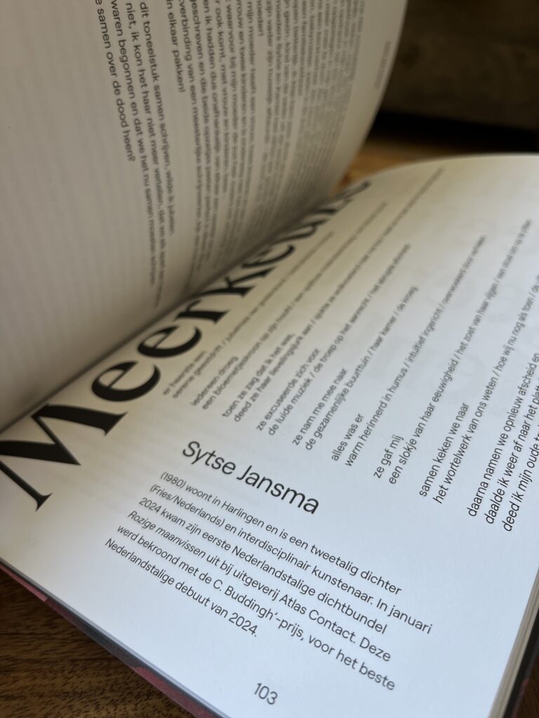 Het Vlaams literair tijdschrift Deus Ex Machina heeft een thema nummer over ‘rouw’ uitgebracht. Het gedicht ‘meerkeuze’ staat erin opgenomen.