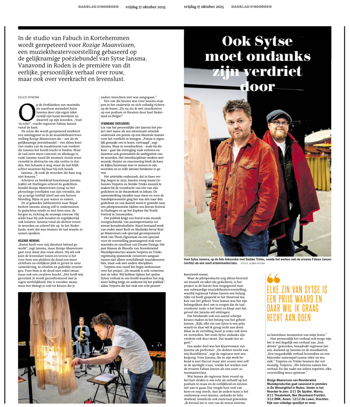 Een mooi voorverhaal over onze voorstelling Rozige Maanvissen in het Dagblad van het Noorden, en de Leeuwarder Courant!